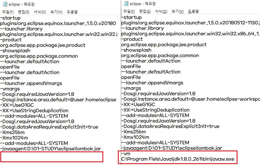 3. 이클립스가 JRE대신 JDK통해 실행되도록 .ini파일 편집 eclipse.ini 파일