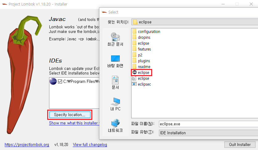 사용할 이클립스 지정