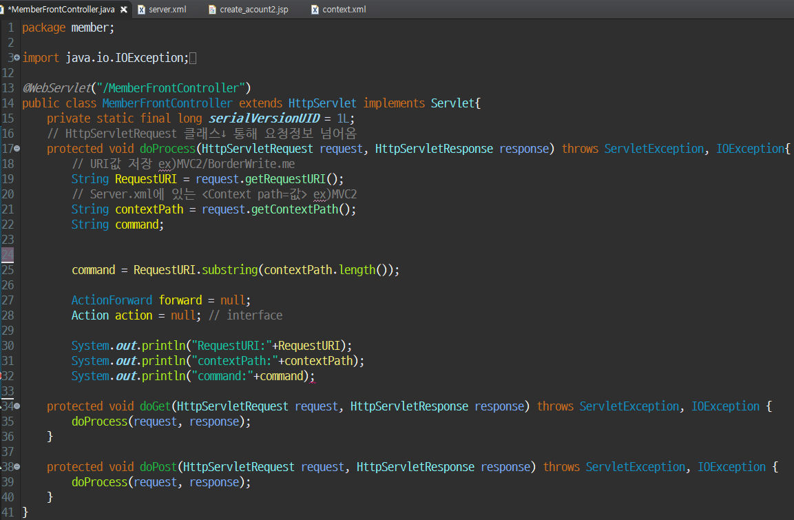 화면 이동에 사용되는 ActionForward 클래스 (0) 2021.04.07 05)JSP 데이터 이동 (0) 2021.03.26 04)URI 주소의 경로(path) 바꾸기 (0) 2021.03.26 02)배포 파일 생성 (0) 2021.03.26 01)톰캣-프로젝트 연결 (0) 2021.03.25